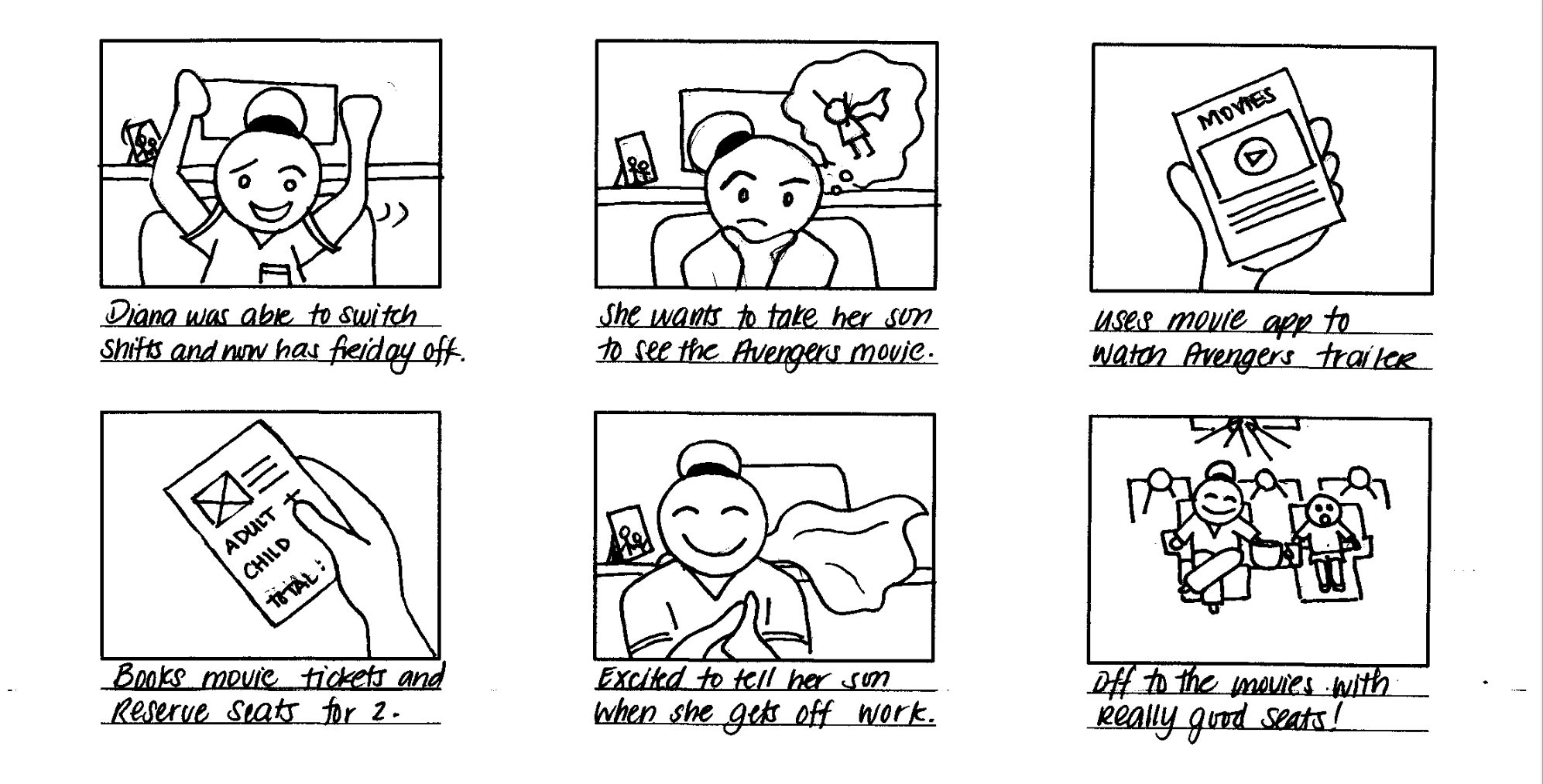 The initial step was to interview six relevant users to survey their ticketing experience and what products they use to book their movie tickets online.